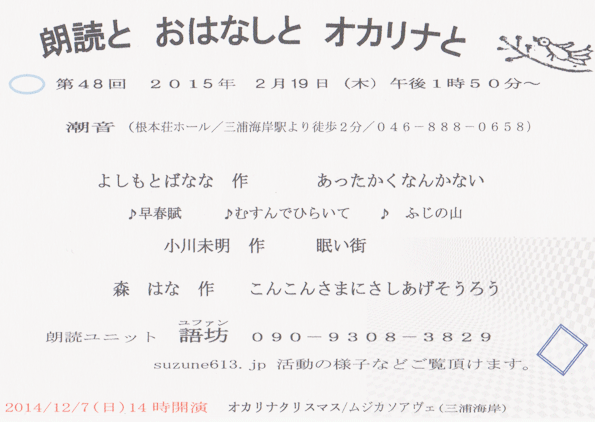 根本荘ホール「潮音」で年4回開いております朗読会。